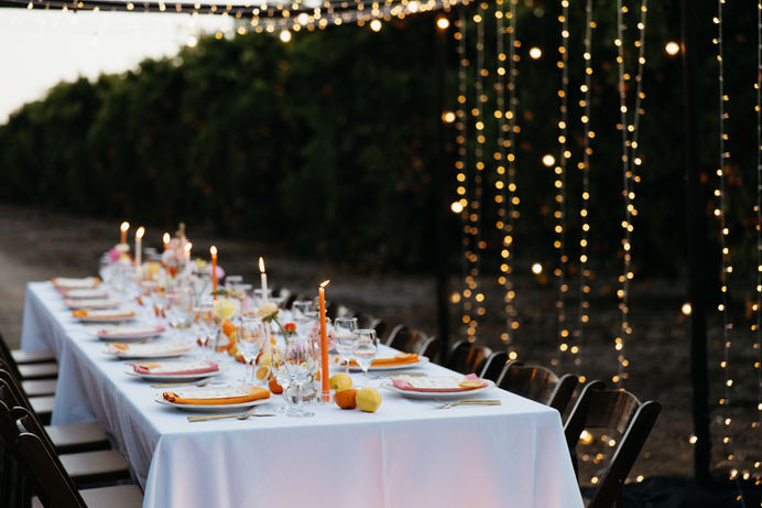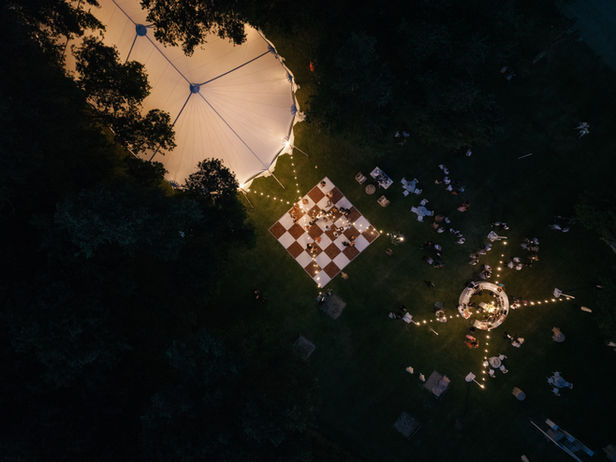 All string lighting, canopy of lights and waterfall lighting is custom as it's based on your exact space and design. We install lighting at many venues and can usually quote lighting at venues without the need for a site visit unless it is a very custom request. Private residence quoting usually requires a site visit for measurements. Reach out to us on our Inquiry Form to inqure about adding lighting to your next event!